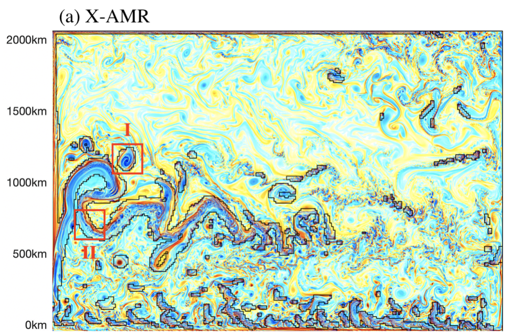 相关成果以“Ocean Modeling with Adaptive REsolution (OMARE, version 1.0) Refactoring NEMO model (version 4.0.1) with the parallel computing framework of JASMIN. Part 1: adaptive grid refinement in an idealized double-gyre case”为题,发表于Geoscientific Model Development杂志。实验室博士生张岩(第一作者)、王轩同(第二作者)和宁宸辉(第四作者)同为OMARE模式的主要开发成员,徐世明副教授和北京应用物理与计算数学研究所的安恒斌研究员为文章的共同通讯作者,清华大学地球系统数值模拟教育部重点实验室卓越访问教授王斌指导了相关工作。文章合作作者还包括北京航空航天大学和中科院大气物理研究所等单位的研究人员。本项工作得到了科技部重点研发计划“全球变化及应对”重点专项(2017YFA0603900)和国家自然科学重点基金(42030602)等项目的支持。