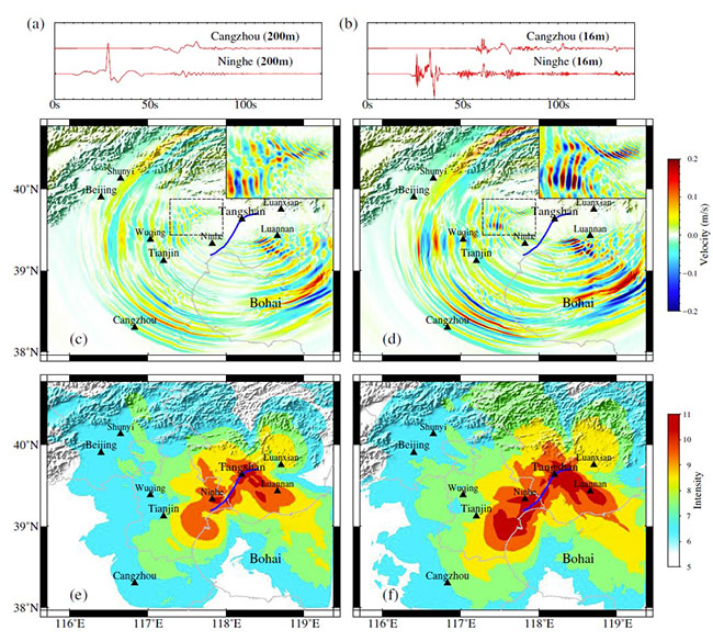 基于“神威·太湖之光”超级计算机的强大计算能力,由清华领衔的研究团队成功设计了高可扩展性的非线性地震模拟工具。该工具充分发挥国产处理器在存储、计算等方面的优势,可实现高达18.9PFlops的非线性地震模拟,是国际上首次实现如此大的计算规模下的高分辨率、高频率的非线性可塑性地震模拟。该工具首次实现了对唐山大地震(M7.8, 1976)发生过程的高分辨率精确模拟,使科学家可以更好地理解唐山大地震的影响,对地震预防预测等具有重要意义。