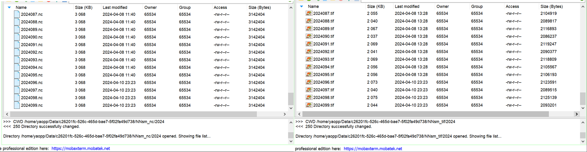 图 3 数据中心服务器上的nc格式(左)和tif格式(右)土壤水分文件