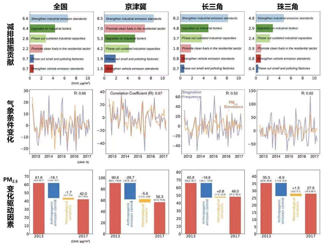 我国是全球大气成分变化最剧烈、大气污染构成最复杂的地区之一。“中国大气成分变化驱动因素及环境健康效应”项目主要完成人张强(清华大学)、贺克斌(清华大学)、刘俊(北京大学)、郑博(清华大学)、朱彤(北京大学)开展长期合作,在服务国家大气污染治理重大战略需求过程中凝练关键科学问题,通过理论与方法学创新,在中国主要大气成分排放长期变化特征、大气PM2.5成分浓度时空演变规律与来源识别、大气成分变化驱动因素和环境健康效应等方面取得具有重要国际影响力的原创性成果,有力推动了大气化学学科发展,为我国大气成分排放研究引领国际前沿做出重要贡献。