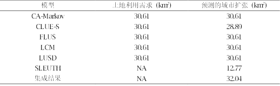 表2 模型输出的2015-2020城市增长面积,以真实的土地利用变化作为土地需求