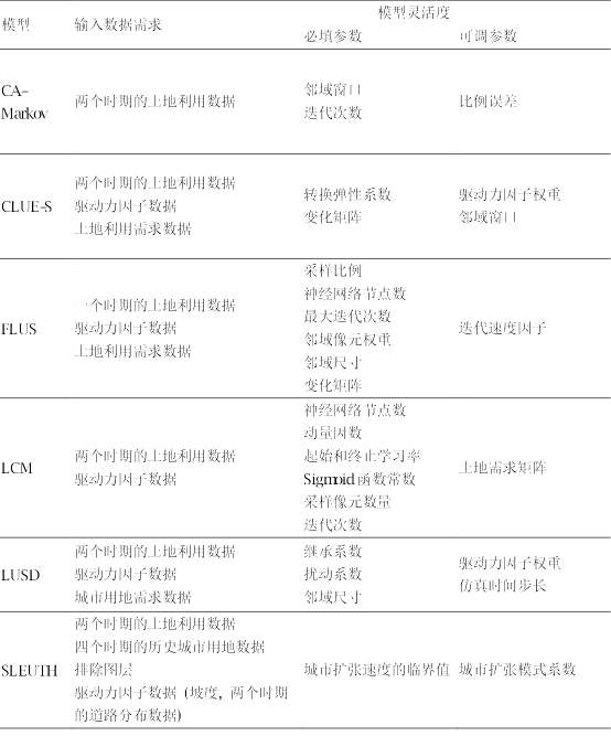 研究发现:(1)各模型在输入不同的用地需求时的预测精度发生变化,显示各模型不具备一个内生的精度,对模型进行比较时应重点关注对模型的验证,而不是其单个预测的精度;(2)在对比各个UGMs的输入数据需求和灵活度之后发现, SLEUTH对输入数据的要求最高,而FLUS和LCM允许用户在建模方面具有更高的灵活性;(3)在使用预测结果和模型文档中给出的模型表现进行对比验证后发现,CA-Markov,FLUS,LUSD和LCM模型通过模型验证,模型使用者能够控制这些模型来在不同的情景进行预测。上述发现对研究者选择适合的模型进行城市扩张模拟预测提供了参考依据。