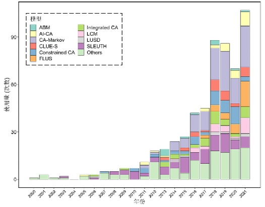 城市扩张模型(Urban growth models, 简称UGMs)是预测城市扩张的主要研究工具。自1950年以来,基于不同建模框架和算法的UGMs大量出现,但当前对不同模型表现的对比研究相对不足。研究者在选择模型时缺乏参考依据,开展城市扩张预测研究时对UAM的选择通常偏主观,从而增加了预测结果的不确定性。针对上述问题,清华大学地球系统数值模拟教育部重点实验室(以下简称“实验室”)杨军教授研究组统计了2000-2021年间城市扩张模拟研究中的各类UGMs使用情况,并从中选择了六种常用的UGMs,从用户角度出发对模型进行了验证,并评价了模型的数据需求和灵活度差异,以及在模拟预测城市扩张方面的性能差异。