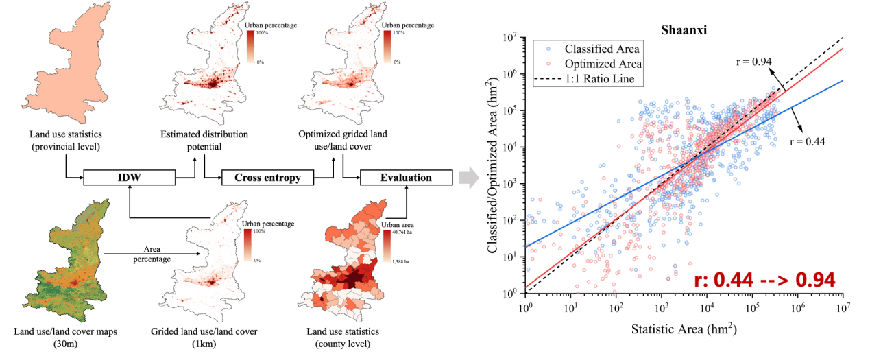 图2 基于全国土地调查统计数据约束的制图优化方法(以陕西省为例)