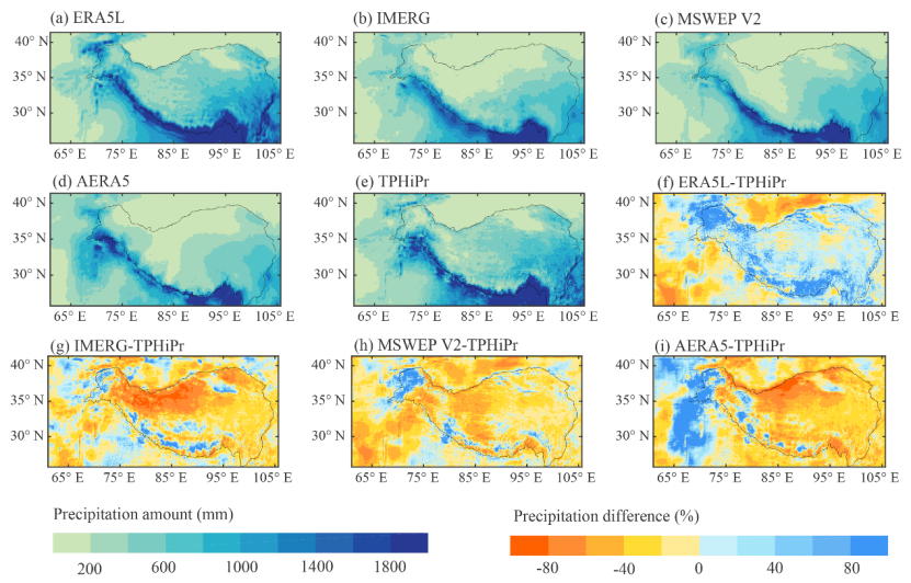 高精度的降水数据是地表过程研究的重要基础。然而,第三极地区地形复杂,降水呈现出高度的空间变异性。受限于地理和交通条件,目前降水站点观测多分布于低海拔和东部地区。同时,现有格点降水数据在第三极地区也存在较大的不确定性,主要表现为:(1)基于卫星和站点插值的格点降水产品难以反映复杂地形对降水分布的影响且对固态降水的估计存在低估;(2)基于大气模拟的降水产品在第三极地区普遍高估降水量。