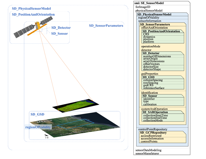 然而,目前ISO和开放地理空间信息联盟(OGC)各自提出的地理定位过程模型差异明显。ISO 19130-1和ISO 19130-2提出了地理定位模型的概念定义,但没有编码方案。另一方面,OGC从地理信息服务的角度提出了地球观测传感网等系列标准,但缺乏对具体的成像方式和过程本身的描述。研究组从抽象程度、对象定义、属性设置等多个方面分析对比了已有模型,提出了模型拆解和映射的方法,实现了语义和语法相融合的具体方案,定义了84个类和377个参数的详细编码方案,涵盖了光学、合成孔径雷达(SAR)、干涉合成孔径雷达(InSAR)、激光雷达(lidar)、声纳(sonar)等7大类被动观测和主动观测情形,适用于世界气象组织所统计的619种地球卫星观测传感器类型中的90%,也适用于大多数的航空传感器。研究组进一步在ISO地理信息技术委员会(TC 211)中推进此项研究成果的标准规范研制工作,前后查阅了超过2500页相关的ISO和OGC标准文本,确保了ISO 19130-3标准文本和参考附录的科学性、系统性和规范性,最终完成了标准制定工作。