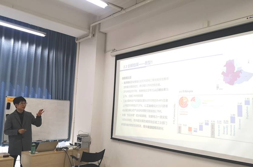孙艺达主要介绍了研究组近期开展的有关东非欠发达经济体二氧化碳排放量核算和驱动因素分析的研究。该研究基于多源数据,构建了东非8个国家2000年至2017年的二氧化碳排放清单,并采用对数平均迪氏指数分解法(LMDI)分析了排放增长的驱动因素及其时空演变规律。研究组进一步基于数据核算结果,揭示了东非经济与排放高度挂钩的发展模式,分析了城市资本结构异质性,预测了城市未来发展路径。