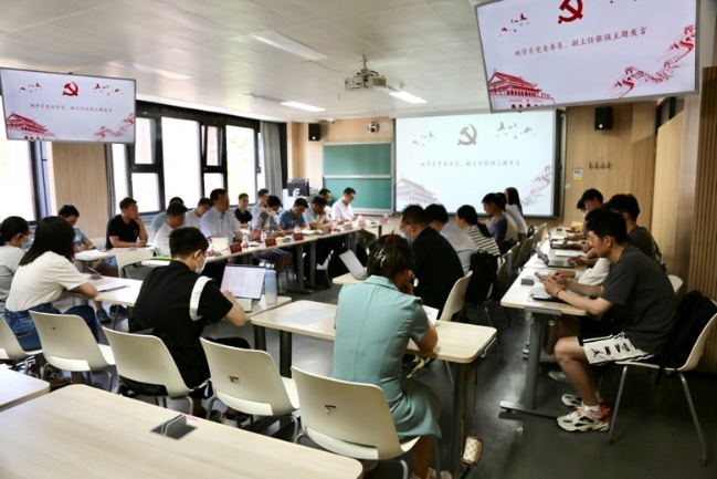 栀子飘香六月初,又逢一年毕业季。6月8日,地学系教职工第二党支部与地研18毕业生党支部于四教4206教室开展“坚定人生选择,践行青年担当”师生联合主题党日活动。校纪委委员、党委组织部副部长、社科学院党委书记欧阳沁应邀出席本次会议,地学系党委理论学习中心组全体成员参会。地学系党委书记耿睿、系主任罗勇、党委副书记卢麾、副主任张强、副主任林岩銮、研工组组长俞乐以及教师代表,同地研18毕业生党支部党员亲切交流。会议由地研18党支部书记、2018级博士生夏雯雯主持。