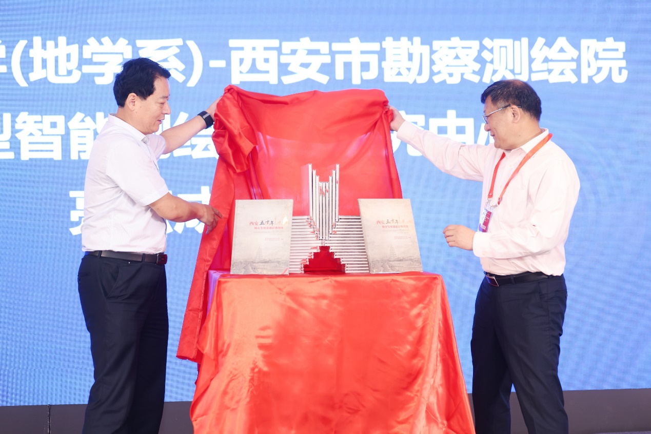 罗勇(右)、甘斌(左)发布《西安五十年城市发展遥感影像图集(1973-2023)》。