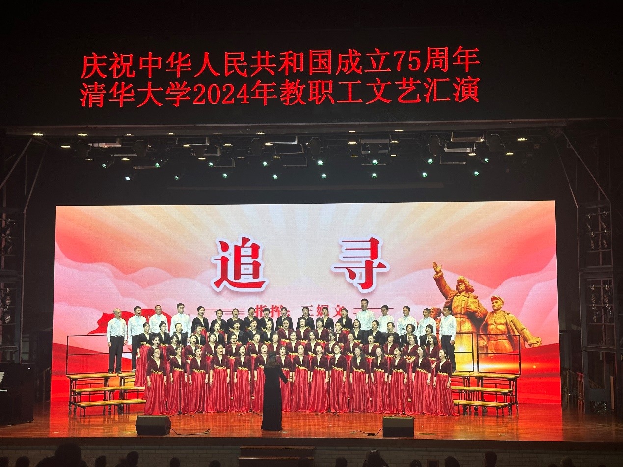 2024年10月16日,清华大学举行“庆祝中华人民共和国成立75周年”2024年教职工文艺汇演。地学系分工会响应学校号召,组织教职工参加《追寻》曲目的合唱,一同演出的还有物理系、能动系、化学系、共计70余位教职工。