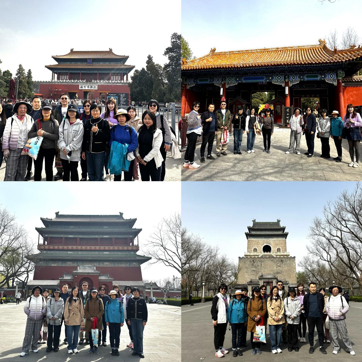 从左至右,从上至下分别是参加活动的教职工分别在故宫、景山公园、鼓楼、钟楼前合影。