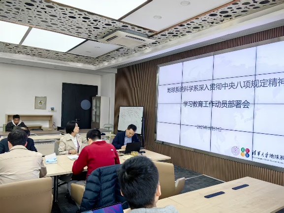 耿睿解读了《中共清华大学委员会关于开展深入贯彻中央八项规定精神学习教育的实施方案》,传达了清华大学2025年全面从严治党工作会议、纪检监察工作会议和全校正职干部会议精神,并对地球系统科学系深入贯彻中央八项规定精神学习教育工作进行动员部署。她强调,要以作风建设为抓手,聚焦师生急难愁盼问题,一体化推进问题查摆和集中整治,为地球系统科学系进一步全面深化改革和事业发展保驾护航。
