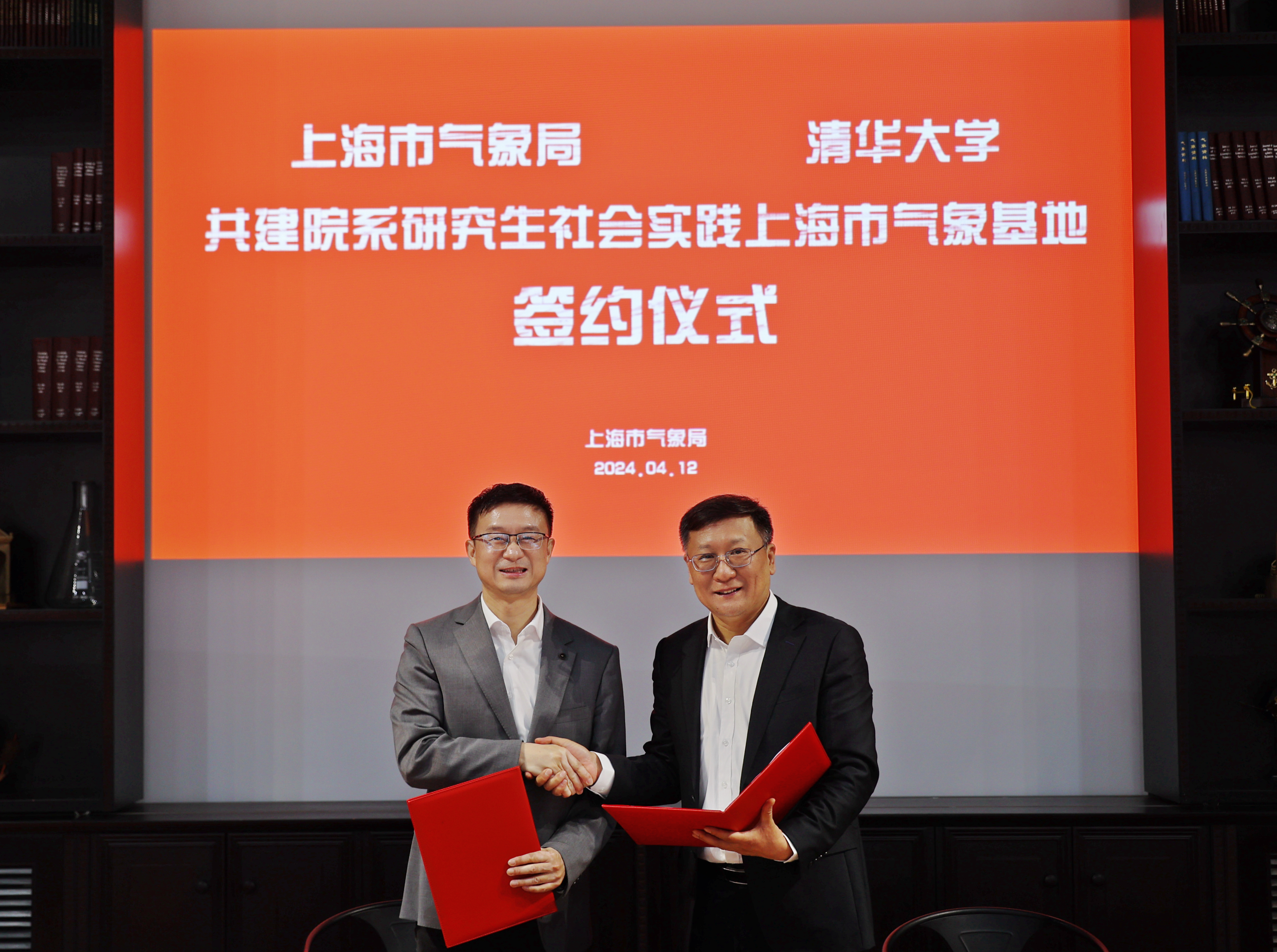 双方还举行了上海市气象局、清华大学共建“清华大学地球系统科学系研究生社会实践上海市气象局基地”的签约仪式。冯磊和罗勇代表双方签订协议书。