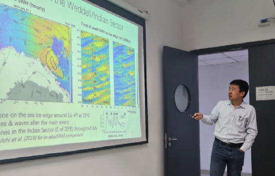 徐世明系统介绍了基于CryoSat-2雷达测高卫星的极地海冰边缘区反演算法,以南大洋的海冰边缘区为例,介绍了虚拟星座组网的冰缘区遥感方法与具体应用,以及课题组在高分辨率海洋-海冰模式发展、海洋亚中尺度模拟等方面的成果与近期动态。