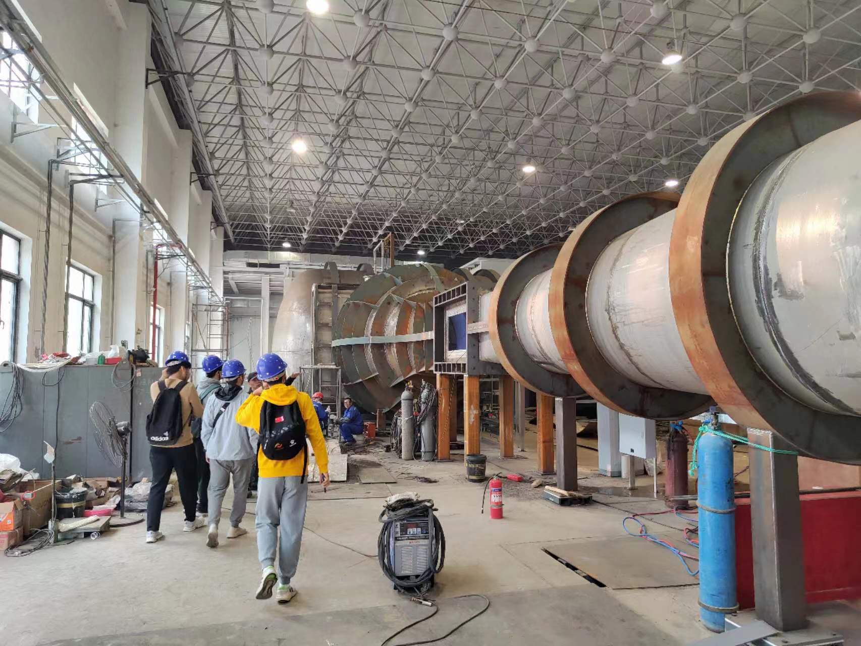 在活动的最后,基地讲师们还为同学们准备了一个特别的“彩蛋”——参观正在建设中的催化剂动态检测风洞试验平台。同学们走进了风洞装置内部,近距离体验了试验、扩散、动力、稳定、拐角等部段的设计和功能,并深深为超过700立方米体积的大型风洞装置所震撼。