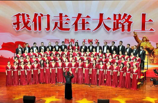 为庆祝中华人民共和国成立74周年,更好地凝聚广大教职工爱党爱国、爱岗敬业的精神力量,2023年10月18日、19日晚,清华大学在大礼堂举办了主题为“凝心铸魂跟党走 团结奋进新征程”的文艺汇演。地学系分工会积极响应学校号召,组织12位教职工参加了《我们走在大路上》曲目的合唱,一同演出的还有能动系、化学系、物理系共计70余位教职工。