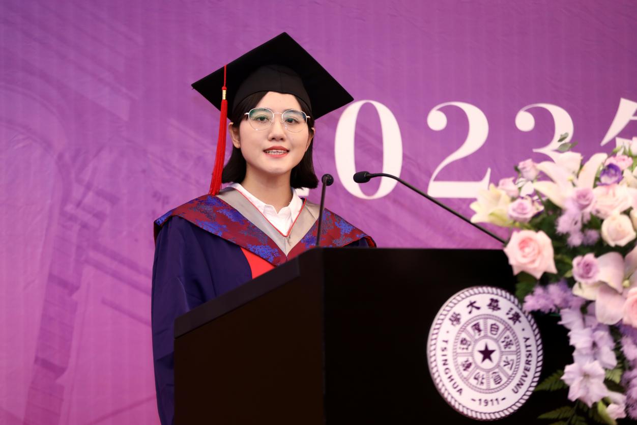 毕业典礼在昂扬的国歌声中拉开序幕。地学系副系主任林岩銮教授宣读了地学系2023届毕业生及优秀毕业生名单,并向毕业生们表示了祝贺。地学系2022~2023学年度毕业生代表、“清华大学优秀博士毕业生”陶凤,“北京市优秀毕业生”孙静发言。